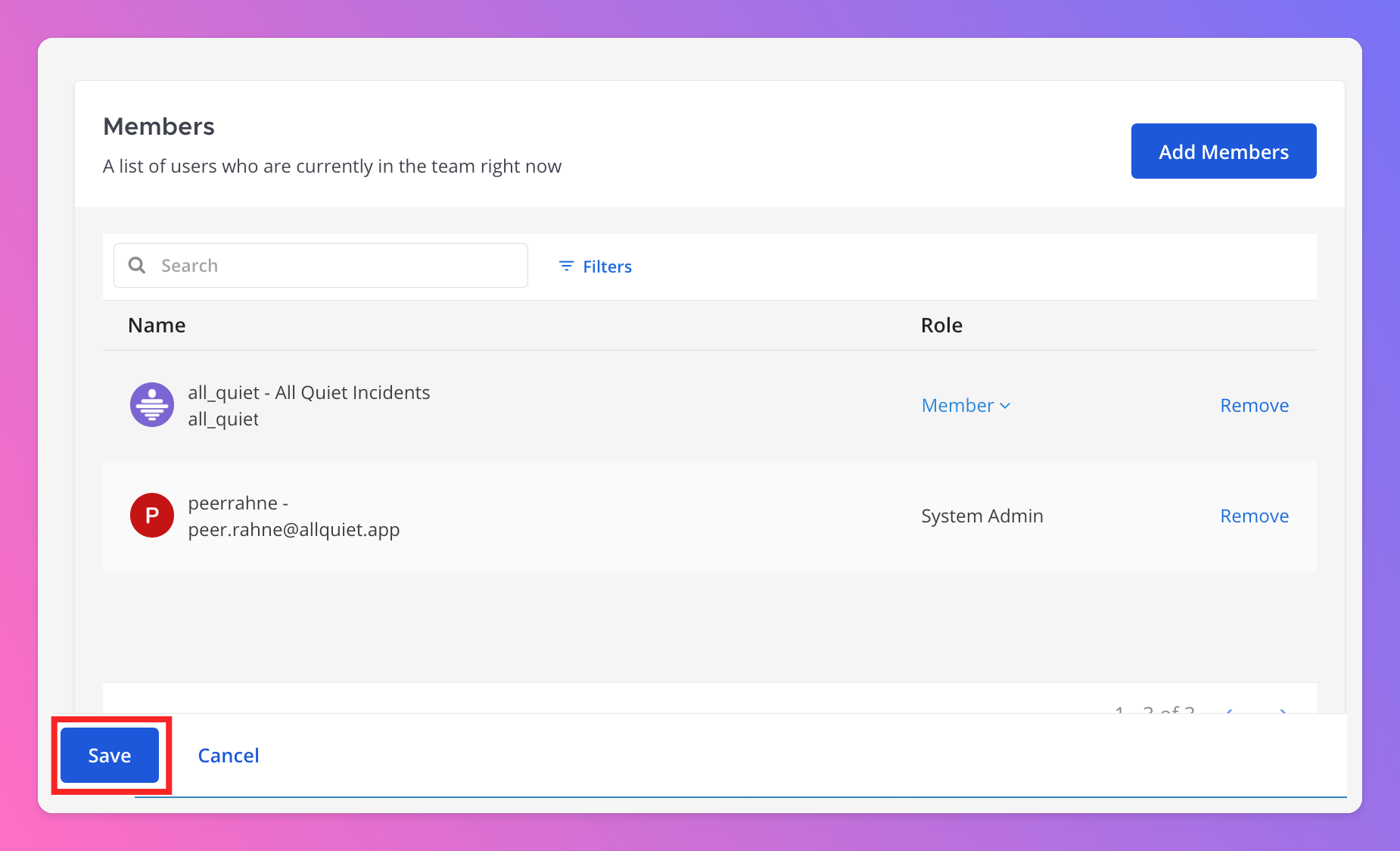 Display Namethat adds more information than theUsername, like “All Quiet Incidents” or “Incident from All Quiet”. - “Member”