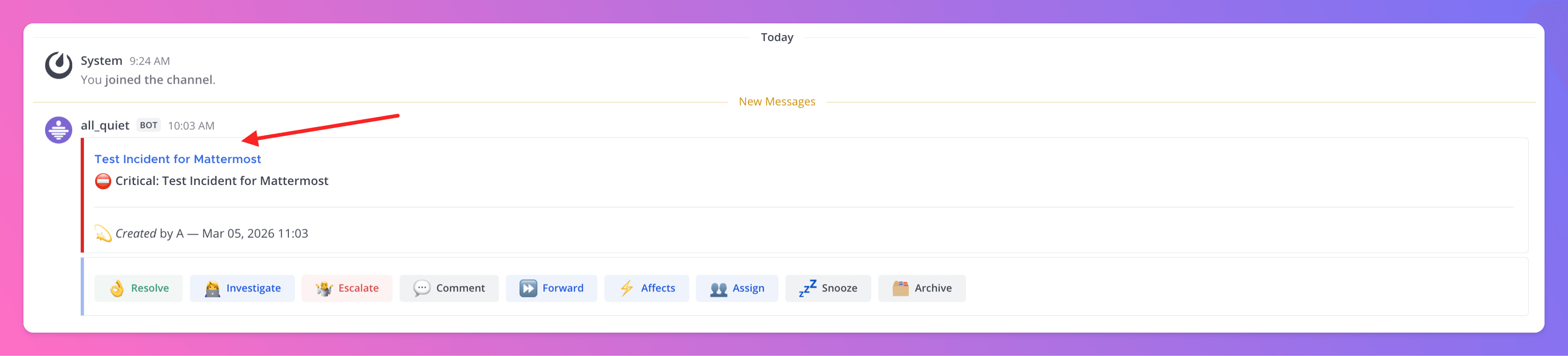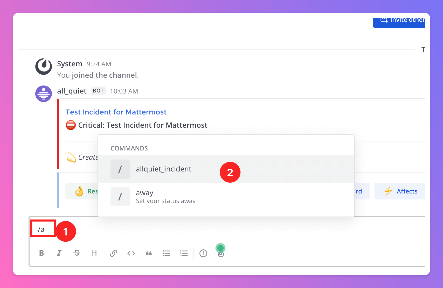 Now, your users can create All Quiet incidents from your Mattermost channels.