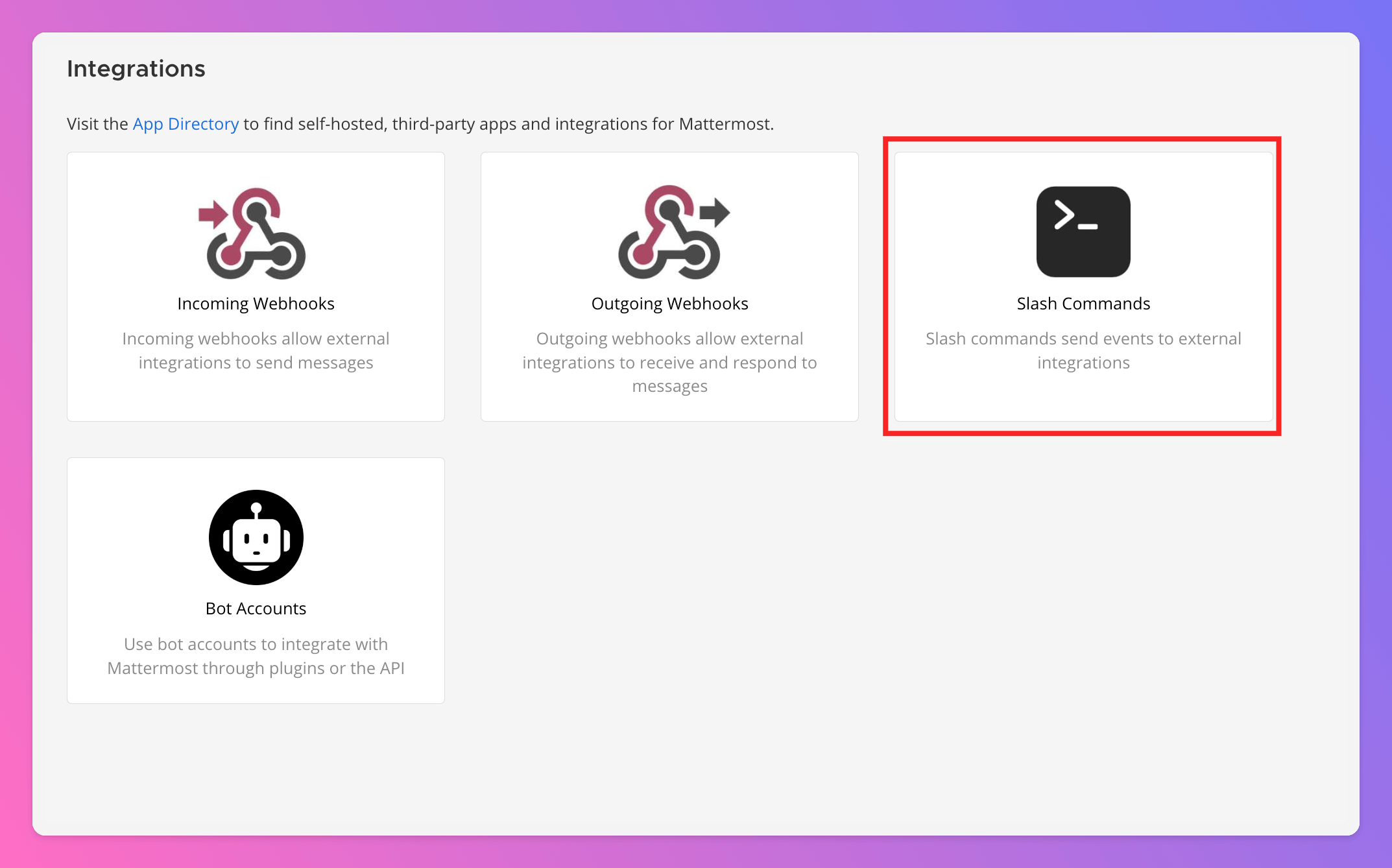 Slash Commands as integration type.