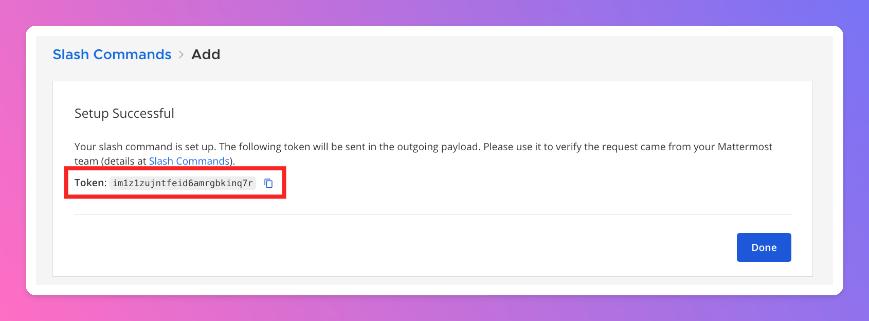 Slash command secret tokeninto your Mattermost integration settings. - Save your settings.